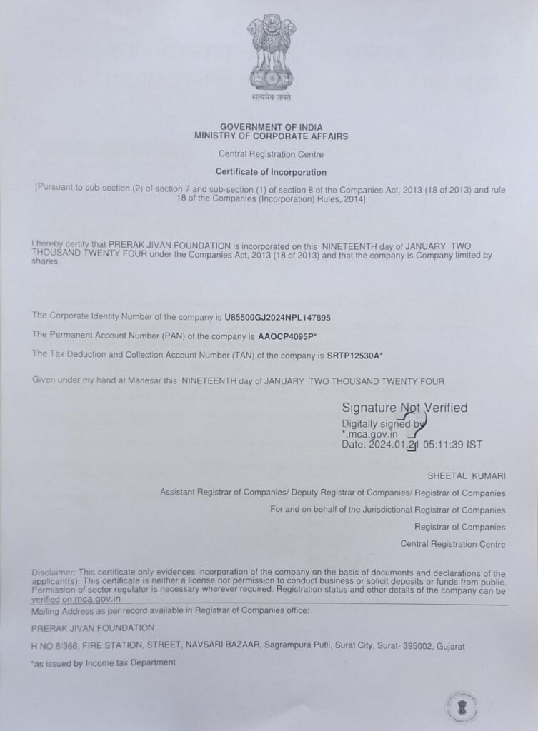 Our Certifications 12A Certificate Registration Certificate 80G certificate NGO darpan Udyog Aadhar ISO 9001:2015